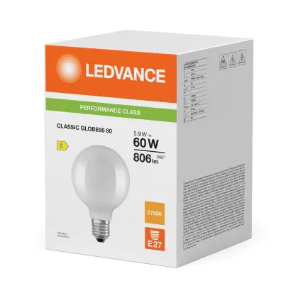 Die Ledvance Classic LED Globe Matt 5.9W 806lm - 827 Extra Warmweiß | Ersatz Für 60W ist eine effiziente E27 LED-Lampe mit Retrodesign und der perfekte Ersatz für Ihre konventionellen 60W Lampen mit E27. Zudem strahlt sie Licht in der Farbtemperatur aus und punktet durch eine lange Lebensdauer.