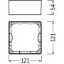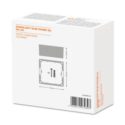 Der schlanke Ledvance Downlight Rahmen ist ein rechteckiger Aufbaurahmen für DOWNLIGHT SLIM SQUARE. Die Bezeichnung SQ steht für die quadratische Form der Lampe (square), die Zahl für eine Einbaubreite von 105 mm. Die Montage der Leuchte erweist sich als sehr einfach dank mitgelieferter Bohrschablone. Zudem besitzt diese LED ein robustes Gehäuse aus Polycarbonat. Alle benötigte Montagezubehör ist in der Lieferung mit enthalten.