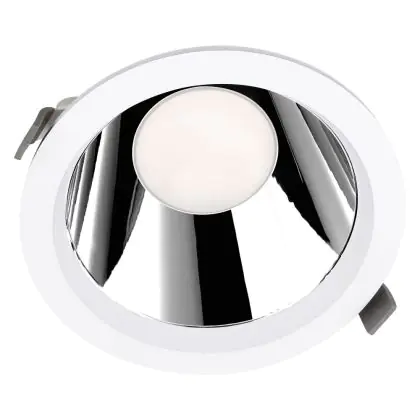 Bei dem Produkt “Ledvance LED Downlight Comfort UGR19 Aluminium Weiß 18W 2160lm 55D - 930 Warmweiß | Ausschnitt 150mm - IP44 - Höchste Farbwiedergabe” handelt es sich um einen effizienten LED-Deckenspot, welcher Licht in der Farbtemperatur 3000K - Warmweiß ausstrahlt und durch eine lange Lebensdauer punktet. Das Downlight ist recycelbar und umweltfreundlich, denn es enthält kein Quecksilber.