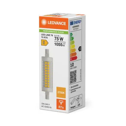 Die Ledvance LED Slim Line R7s 78mm 9.5W 1055lm - 827 Extra Warmweiß | Ersatz Für 75W ist eine effiziente R7s LED-Lampe und der perfekte Ersatz für Ihre konventionelle Halogen-Stablampe mit 75W. Zudem strahlt sie Licht in der Farbtemperatur aus und punktet durch eine lange Lebensdauer.