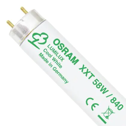 Die Osram Lumilux XXT T8 58W - 840 Kaltweiß | 150cm ist eine T8 Leuchtstoffröhre von Osram mit einer Länge von 1500 mm. Das Produkt verfügt über 2 Pins und hat einen Durchmesser von 26 mm. Die Röhre strahlt Licht in der Farbtemperatur 4000K - Kaltweiß aus und punktet durch eine lange Lebensdauer.