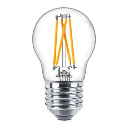 Die Philips Classic LEDluster E27 P45 6W 822-827 Klar besticht mit ihrer schlanken Leistung von 6 Watt und einer langen Lebenszeit von 15.000 Stunden. Zudem können Sie mit diesem Produkt von der DimTone-Technologie von Philips profitieren und die Lichtfarbe der Leuchte per Dimmfunktion anpassen.