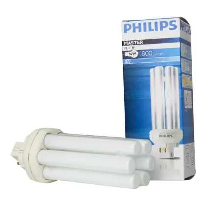 Philips PL-T 4P sind energieeffiziente Leuchtstofflampen mit separater Spannungsversorgung. Diese Lampen müssen mit einem ferromagnetischen Vorschaltgerät verwendet werden und haben 4 polige Buchsen. Mit ihrer GX24q-3 Buchse sind Philips PL-T 26W 827 4P leicht in die Leuchten zu installieren.