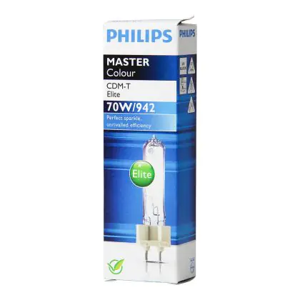 Die Philips MASTERColour CDM-T Elite 70W 942 G12 | Kaltweiß - Beste Farbwiedergabe begeistert mit einer hervorragenden Farbwiedergabe. So kommt diese Lampe idealerweise überall dort zum Einsatz, wo Farben von größter Wichtigkeit sind. Dazu zählen etwa Modegeschäfte, der Lebensmitteleinzelhandel, sowie die Kunstbranche.