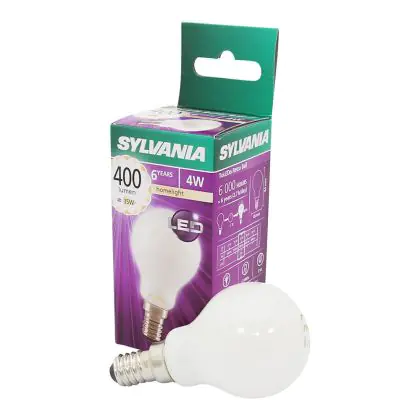 Die Sylvania ToLEDo Retro Ball E14 ist eine energieeffiziente LED-Lampe. Sie hat einen Eigenbedarf von nur 4 Watt, ersetzt dabei jedoch traditionelle Leuchtmittel von 35 Watt. Das ermöglicht eine Energieersparnis von fast 90 %. Darüber hinaus hat die LED einen E14-Sockel und ein kugelförmiges Design. Sie spendet extra warmweißes Licht mit einer Farbtemperatur von 2.700 Kelvin.