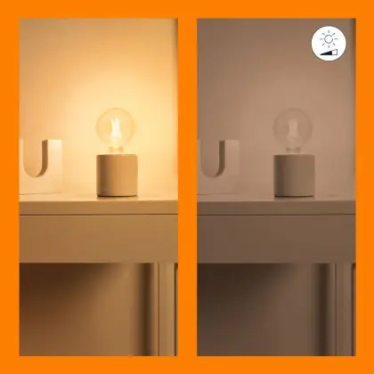 4. Dim to Warm: Durch Dimmen wird das Licht wärmer (gelber). Je stärker Sie dimmen, desto wärmer wird die Farbe.